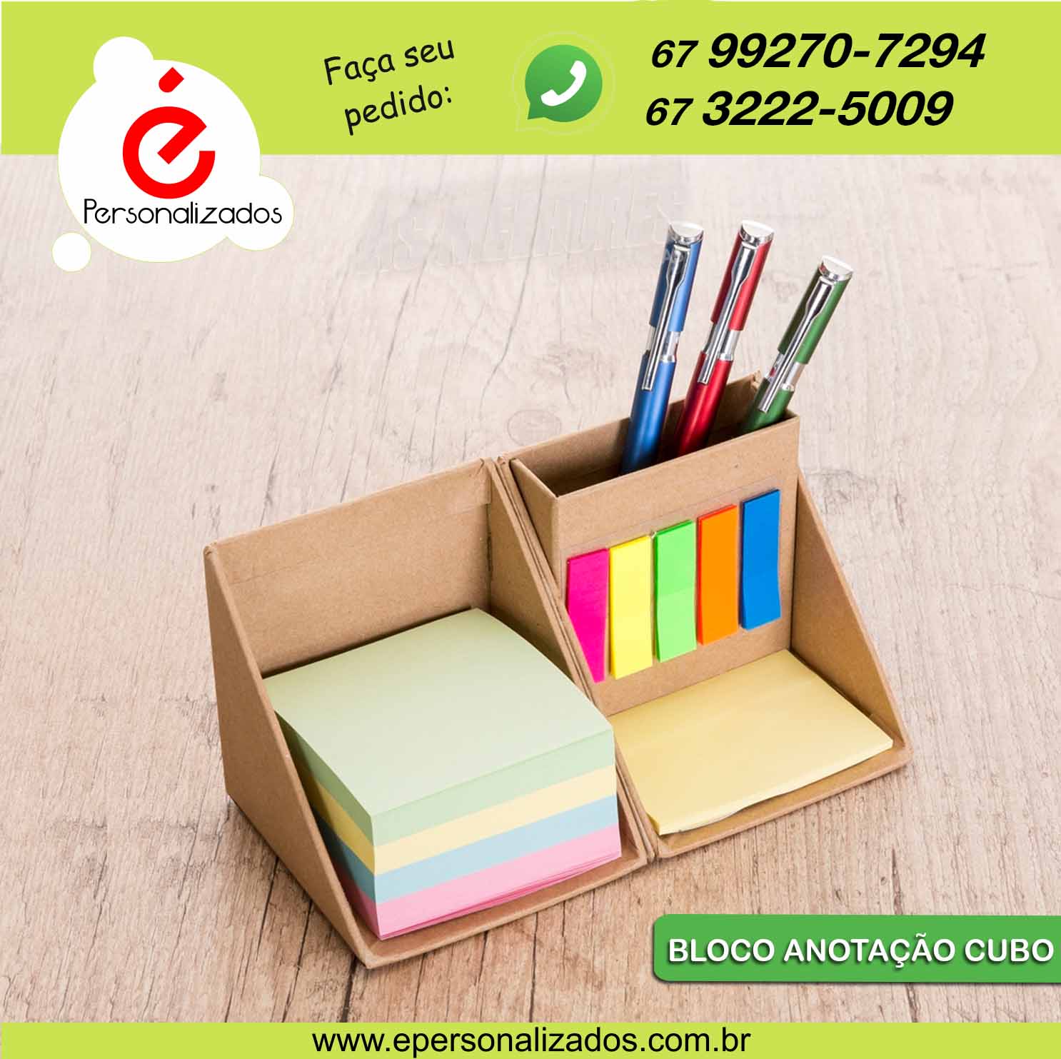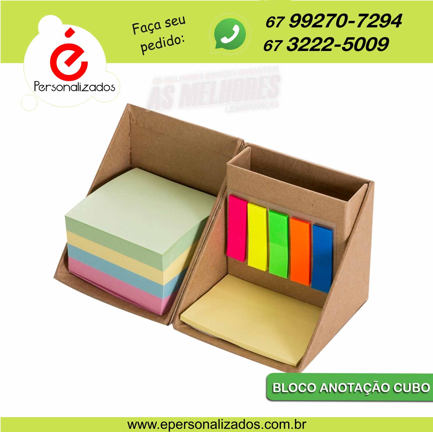 Descrição: Bloco de anotações formato cubo com autoadesivos, abre e fecha em diagonal. Possui 5 blocos autoadesivos com aproximadamente 26 folhas cada, bloco amarelo com aproximadamente 25 folhas e conjunto de blocos com 4 cores e aproximadamente 100 folhas cada. Possui suporte para caneta, clips e afins no compartimento atrás bloquinhos coloridos.